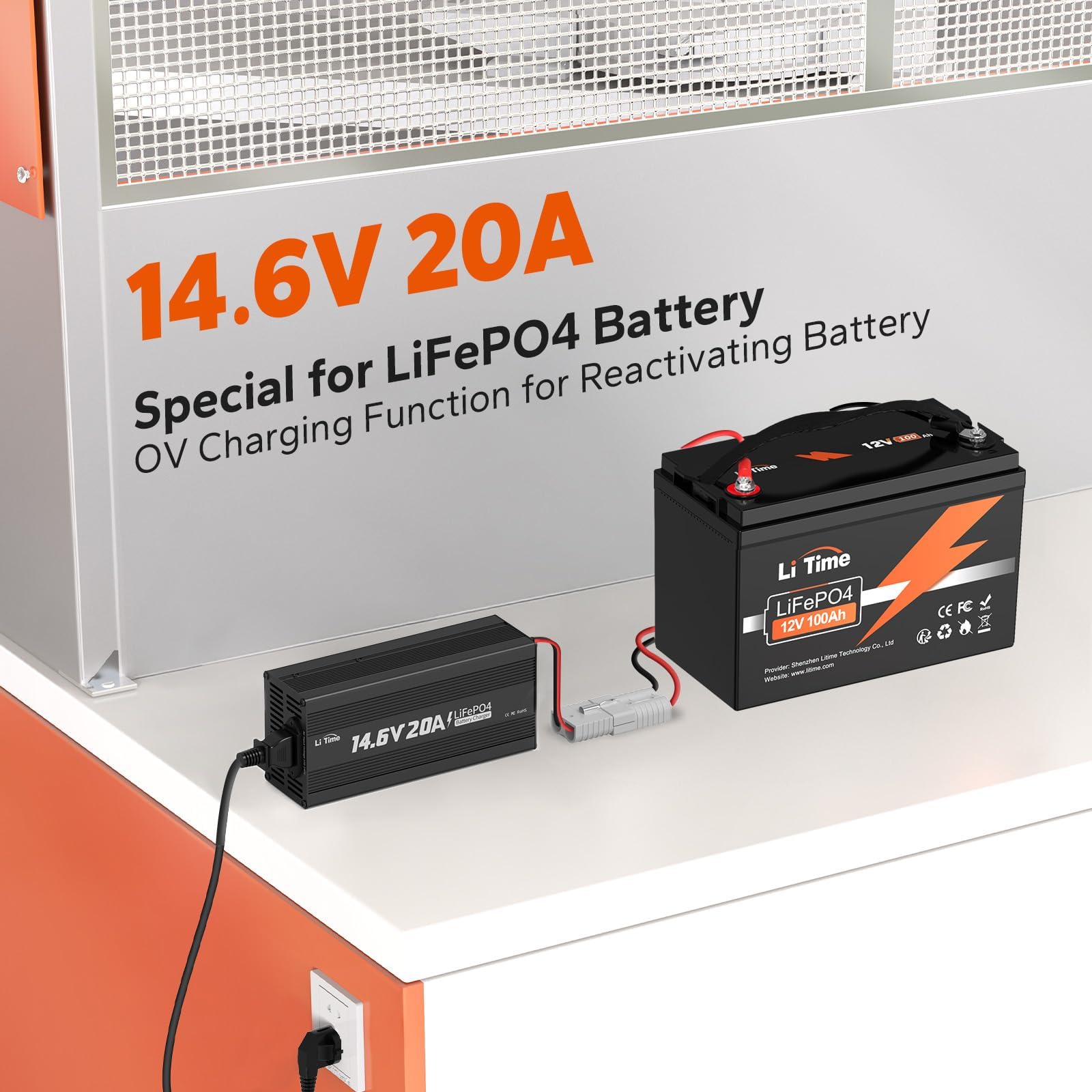 - 12V LiFePO4 Charger: LiTime Smart LiFePO4 charger designed for 12V (12.8V) LiFePO4 batteries. Our charger supports 0V charging function to reactivate 0V battery. Charging Specs: 14.6V | Charging Current: 20A | Rated Input Voltage: 100V-240V AC; 50Hz to 60Hz.