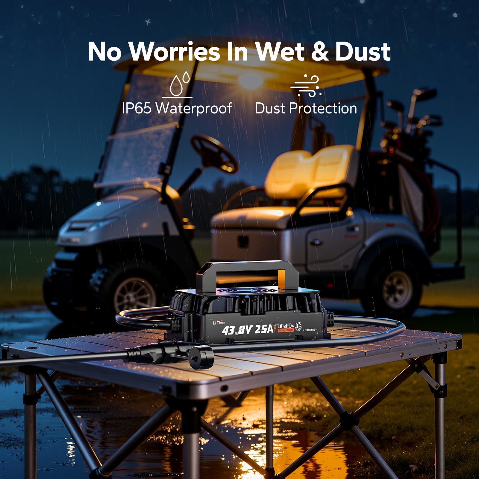 LiTime 36V 25A Lithium Battery Charger, IP65 Waterproof, Smart 43.8V LiFePO4 Charger for 38.4V Lithium Battery, Ideal for Golf Cart, RVs, Marine, Trolling Motor, with 0V Activation & LED Indicator